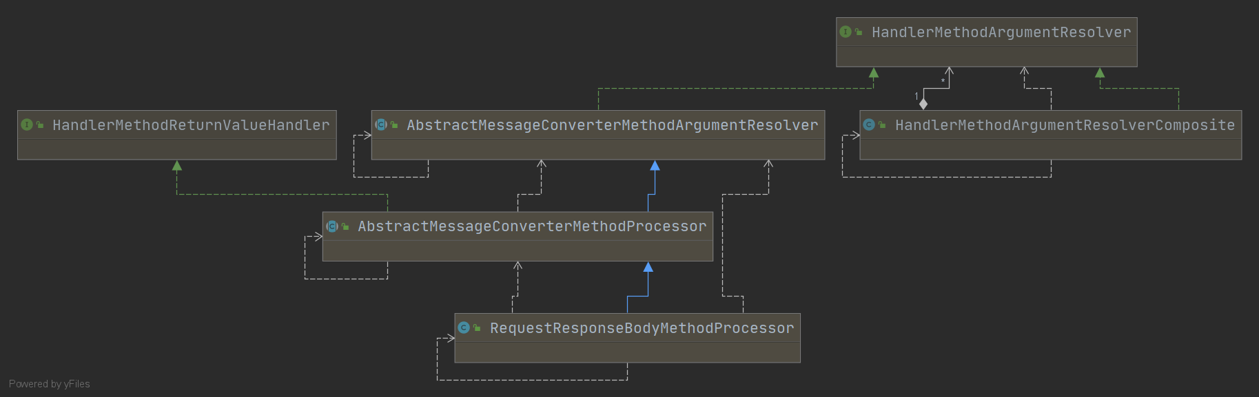 对于HandlerMethod的参数和返回值处理来说,对应着不同的处理方式,即对应着不同的策略,所以此处用的策略模式来处理的。至于HandlerMethodArgumentResolverComposite它则对应着策略工厂,同时,因为这个类实现了HandlerMethodArgumentResolver,所以它也是组合模式的变形,具体的策略类是HandlerMethodArgumentResolver