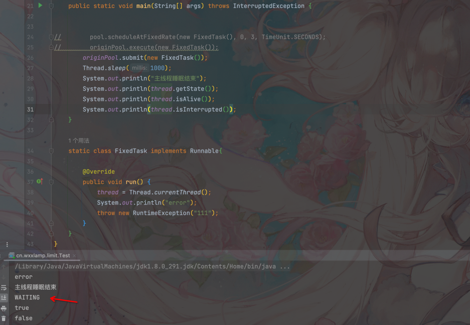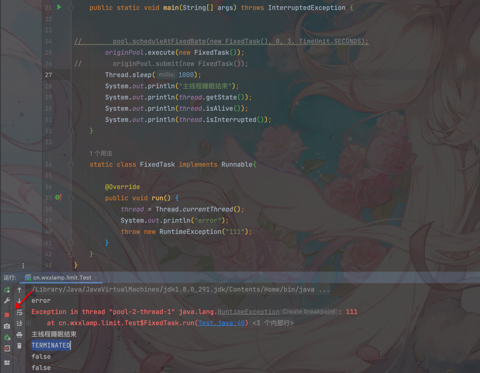 - 发生业务异常的用户线程直接结束,状态变成了