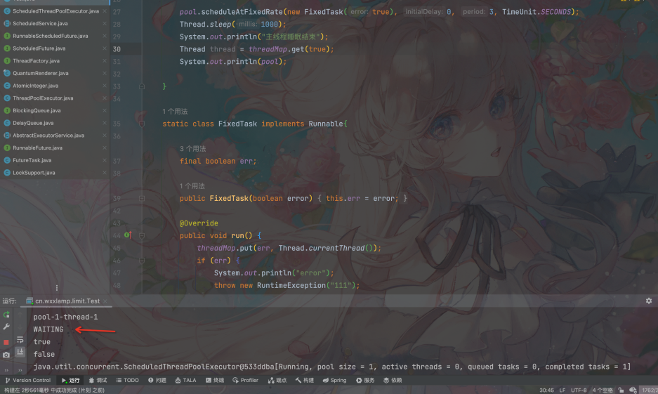 同理,ScheduledThreadPoolExecutor作为ThreadPoolExecutor的子类,基本上大差不差。与其最大的不同之处就在于队列:定时线程池自定义了DelayedWorkQueue队列,work线程从队列中获取任务时,队列会去判断时间,只有时间满足,才会将任务出列。同时在任务被执行完成后,定时线程池会将该任务重新入队,便于之后重新调用