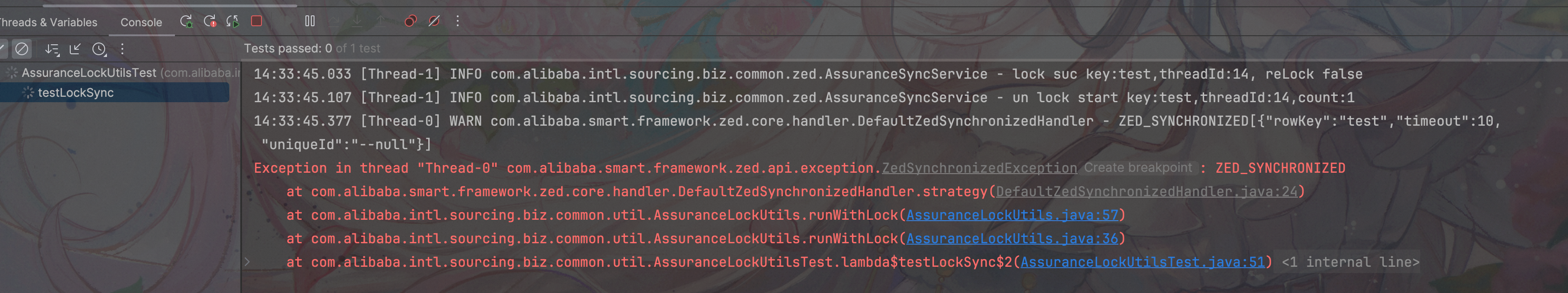 原因是因为第二个线程先执行,第一个线程没有获得到锁,抛出加锁失败异常,导致没有执行latch.countDown()方法,进行会导致主线程一直pending。解决方案很简单,就是保证第一个测试线程先于第二个测试线程执行。可以使用Semaphore、CountDownLatch和锁,但是这里要注意,不能用Thread.join()