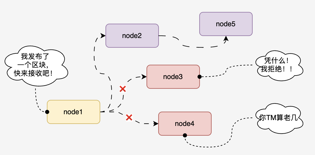 但是,区块合法不代表其他节点一定会接收这个新区块。