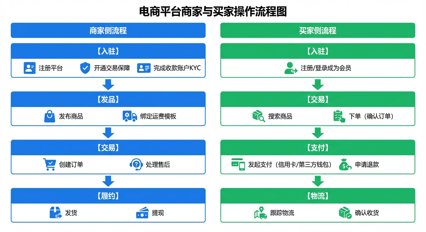 在过去一年里,笔者开发的代码包含了商户的入驻、交易、订单、保障、支付、结算、流动性、账务、网关等各个领域。作为2026年第一篇文章,便是对笔者过去一年左右的工作进行一次总结。同时也主要科普下跨境的交易履约全流程。