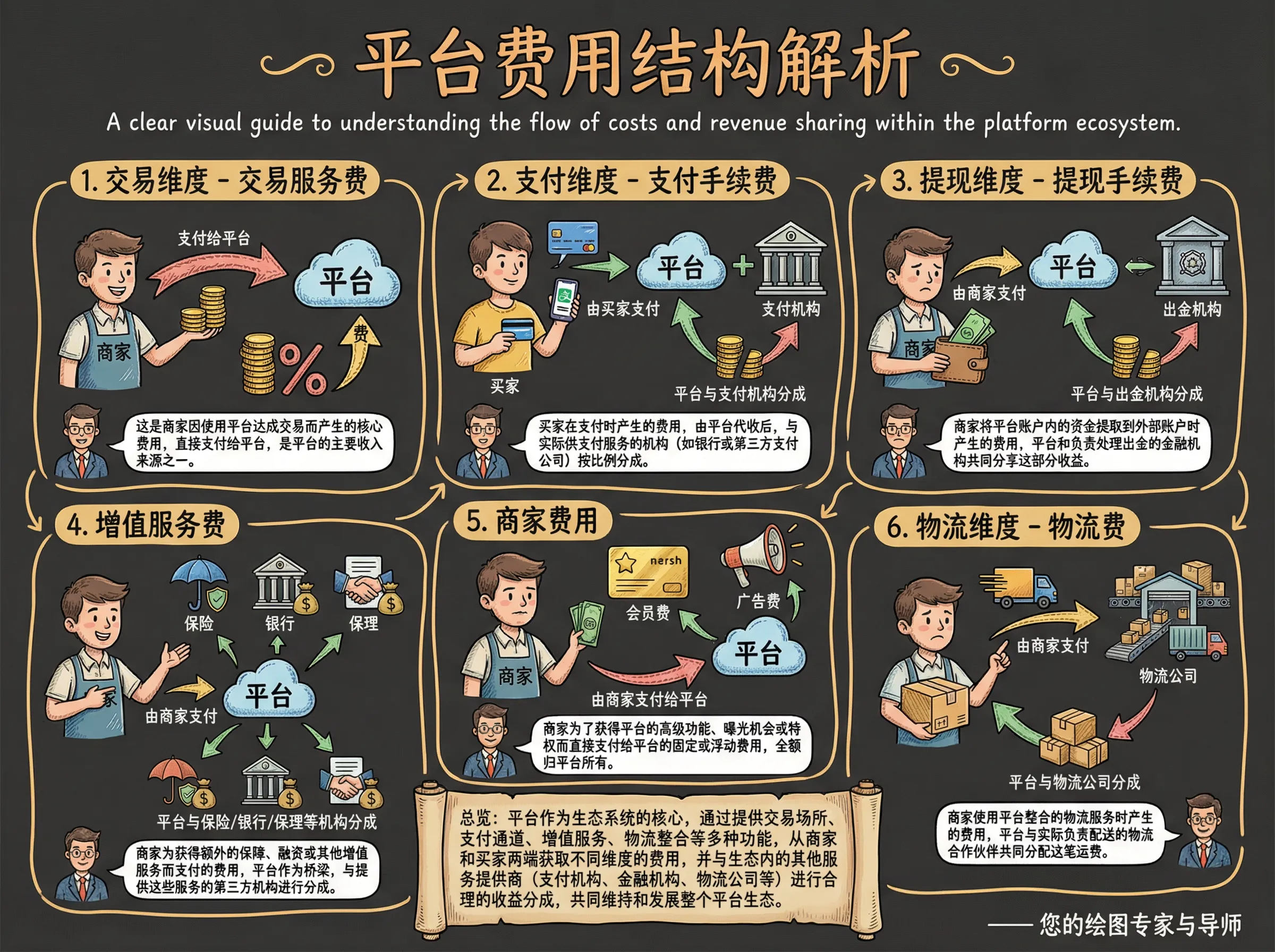 - 交易服务费:每笔会收取商家3%左右的技术服务费。这笔钱全归平台所有,对应的,平台需要给商家开具发票。