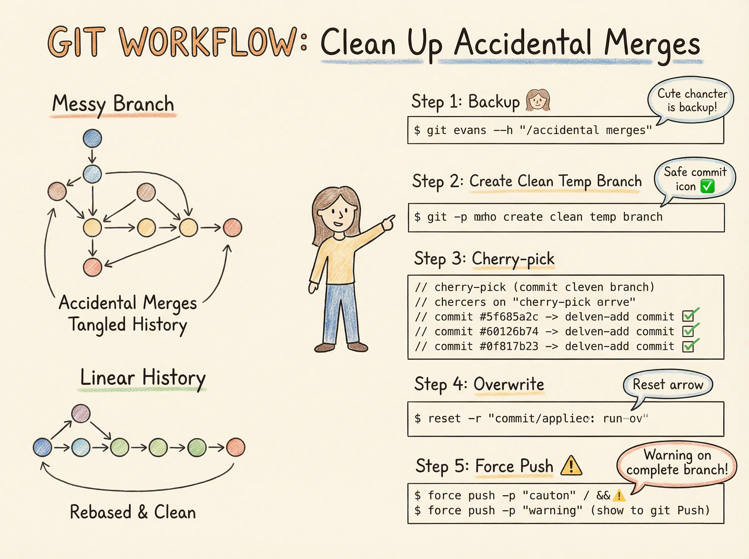 分析发现:虽然本地指针是对的,但远程历史中包含了大量非线性的 Merge Commit(由构建系统自动产生)。我们需要清理时间线。